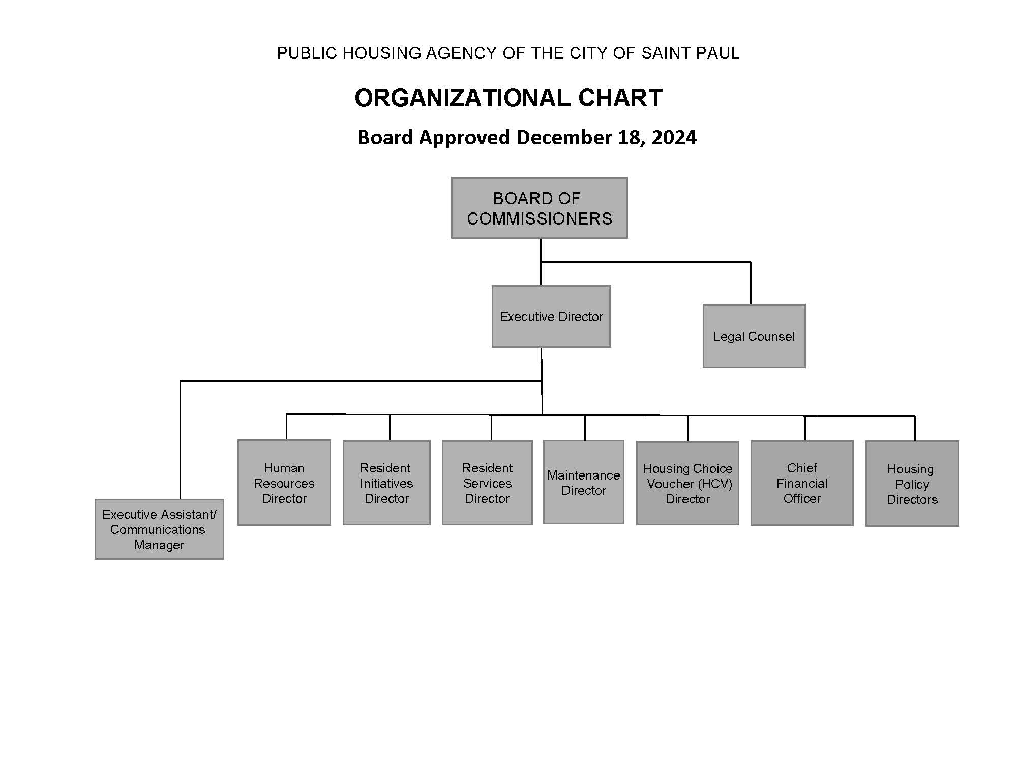 The PHA is governed by a Board of Commissioners. The seven commissioners are appointed by the Mayor and approved by the City Council. Two Commissioners represent PHA-owned housing residents.